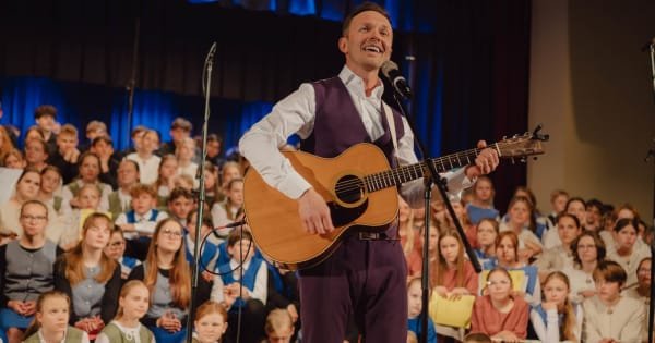 Koncertā “Citāds mēģinājums” 14. maijā Aizkraukles Kultūras centru pieskandināja novada koru, viņu draugu un grupas “Prāta vētra” solista Renāra Kaupera balss.