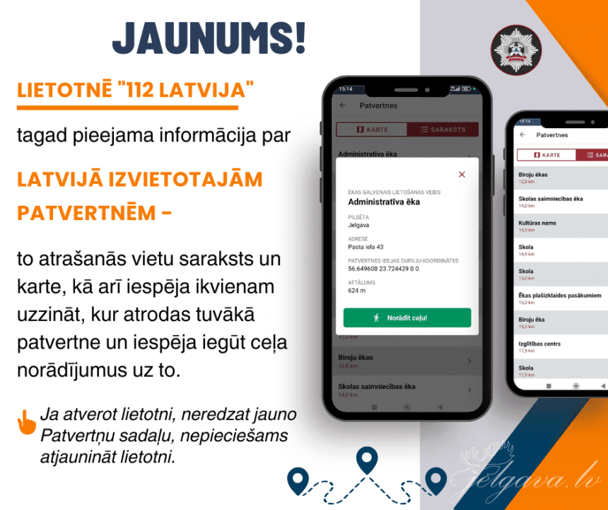 Aicinām iedzīvotājus, kuri vēl nav lejupielādējuši lietotni “112 Latvija”, to izdarīt, savukārt esošos lietotājus – atjaunināt lietotni, lai piekļūtu jaunākajai informācijai un funkcijām.
