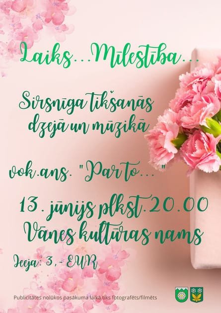 ATZĪMĒTS:13.06.202520:0021:20dzejkoncerts”laiks…mīlestība…”kandavāValmiera