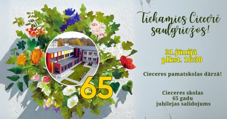 Cieceres pamatskolas kolektīvs mīļi aicina visus Cieceres internātskolas un Cieceres pamatskolas absolventus, esošos un bijušos darbiniekus uz Cieceres pamatskolas 65.gadu jubilejas salidojumu!