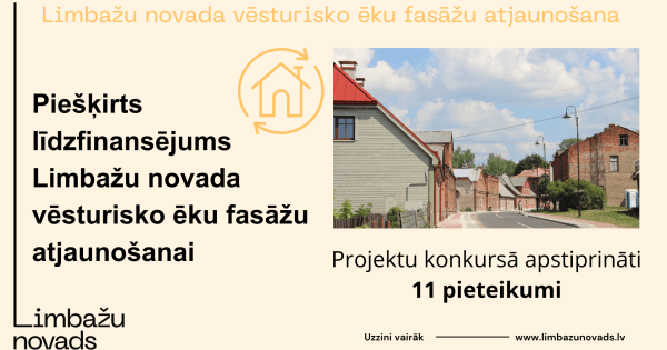 Līdz š.g. 10.aprīlim tika izsludināts projektu konkurss „Limbažu novada vēsturisko ēku fasāžu atjaunošana 2025” ar mērķi Limbažu novada pilsētās un ciemos atjaunot kultūrvēsturiskā mantojuma objektus, uzlabot vides kvalitāti, izcelt arhitektoniskās vērtības un veicināt īpašnieku, nomnieku, apsaimniekotāju un iedzīvotāju atbildību par sava nekustamā īpašuma vizuālo un tehnisko stāvokli. Pašvaldība saņēma 12 konkursa pieteikumus, no kuriem 1 pieteikums neatbilst Nolikuma prasību punktam Nr.7, jo ir finansēts konkursā “Limbažu novada vēsturisko ēku fasāžu atjaunošana 2024”. Projektu konkursā tika pieteiktas ēkas no Limbažiem, Salacgrīvas, Ainažiem, Svētciema un Alojas.