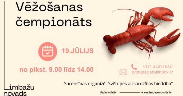 Š.g. 19.jūlijā Svētupes upes posmā un Jaunupē Limbažu novada teritorijā notiks pirmais Vēžošanas čempionāts, ko organizēs “Svētupes aizsardzības biedrība” sadarbībā ar Limbažu novada pašvaldību.