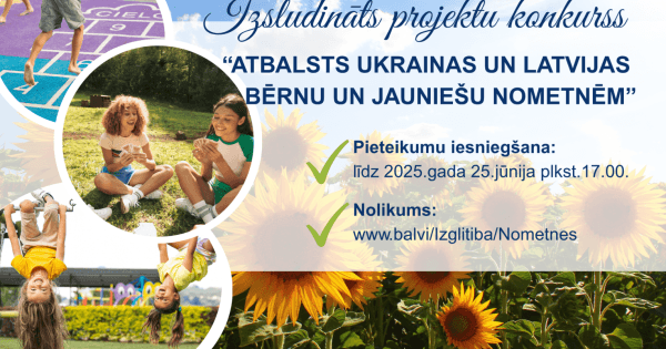 Balvu novada pašvaldība izsludina Balvu novada nometņu projekta “Atbalsts Ukrainas un Latvijas bērnu un jauniešu nometnēm” konkursu