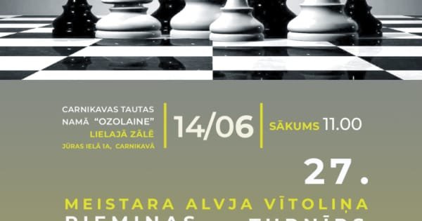 14.jūnijā, Carnikavas Tautas namā “Ozolaine” jau 27.reizi norisināsies Alvja Vītoliņa piemiņas turnīrs šahā, pieminot izcilo Latvijas šahistu.