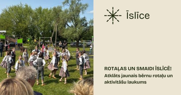 1. jūnijā, Starptautiskajā bērnu aizsardzības dienā, Īslīces pagasta “Rītausmās” (pie LLT pieturas) notika sirsnīgs un ilgi gaidīts notikums. Svinīgi atklāja jauno bērnu aktivitāšu laukumu, kas tapis projekta “Bērnu aktivitāšu laukuma izveide Īslīcē” ietvaros.