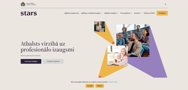 Stars.gov.lv, ko attīsta VIAA sadarbībā ar Izglītības un zinātnes ministriju, ir vienas pieturas risinājums gan izglītības pakalpojumu sniedzējiem, gan cilvēkiem, kuri apgūst jaunas vai pilnveido esošās prasmes.