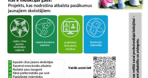 Latvijas Universitātes Studiju inovāciju nodaļa informē, ka no 16. jūnija līdz 18. jūlijam norisināsies uzņemšana projektā “Indukcijas gada atbalsts jaunajiem pedagogiem pēc skolotāja kvalifikācijas iegūšanas”, kas sniedz iespēju atbalstīt jaunos skolotājus visos Latvijas novados. Aicinām pieteikties atbalstam novada jaunos skolotājus, kas kvalifikāciju ieguvuši 2024. vai 2025. gadā.
