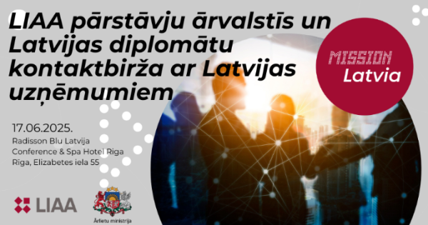 LIAA sadarbībā ar Ārlietu ministriju aicina Latvijas uzņēmējus piedalīties kontaktbiržā, lai saņemtu individuālas konsultācijas par eksporta veicināšanas iespējām un atbalstu ārvalstu tirgos 33 valstīs.