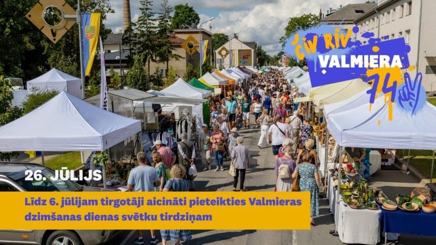 Valmieras 742. dzimšanas dienas svētku tirdziņš norisināsies 26. jūlijā no plkst. 9.00 līdz 16.00 Rīgas ielas posmā. Mājražotāji un amatnieki aicināti pieteikties tirdziņam līdz 6. jūlijam, aizpildot pieteikuma anketu.