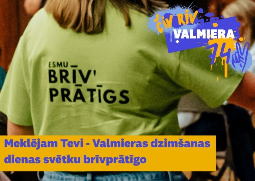 Valmieras dzimšanas dienas svētku organizatori aicina ikvienu, kurš ir gatavs ne tikai skatīties, bet būt kustībā, radīt un piedzīvot – kļūt par brīvprātīgo! No 24. līdz 27. jūlijam Tava enerģija un vēlme palīdzēt ir tieši tas, kas nepieciešams, lai kopīgi radītu mūsu pilsētas 742. dzimšanas dienas svētkus kopā.