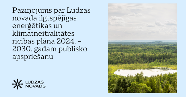 Ludzas novada pašvaldība paziņo, ka, pamatojoties uz Ludzas novada pašvaldības domes 19.06.2025. lēmumu Nr. 245 (protokols Nr. 6, 2.§) “Par Ludzas novada ilgtspējīgas enerģētikas un klimatneitralitātes rīcības plāna 2024. – 2030. gadam publisko apspriešanu”, publiskai apspriešanai tiek nodots Ludzas novada ilgtspējīgas enerģētikas un klimatneitralitātes rīcības plāns 2024. – 2030. gadam.