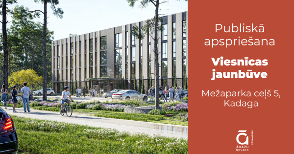 Ādažu novada būvvalde pieņēmusi lēmumu Nr. BIS-BV-5.64-2025-19 par publiskās apspriešanas nepieciešamību, kas paredz nodot publiskajai apspriešanai būvniecības ieceri “Viesnīcas jaunbūve, Mežaparka ceļš 5, Kadaga, Ādažu novads”.