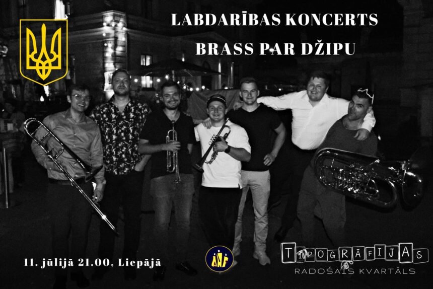 Labiem darbiem nav robežu, brass bends aicina uz koncertu Liepājā, Tipogrāfijas radošajā kvartālā, 11.jūlijā plkst. 21.00. Koncerts tiek organizēts sadarbībā ar “Alūksnes un Apes novada fondu”. Karš Ukrainā diemžēl nav beidzies un mums ir jāpalīdz Ukrainas aizstāvjiem cīņā par dzīvību un brīvību. Mūzika ir stāsts par dzīvību un brīvību – tiekamies koncertā – ņuorleānas skaņās!