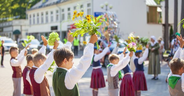 Jūrmalas Kultūras centra Kauguru Kultūras nama bērnu deju kolektīva “Vizmiņa” divas grupas, vadītāji Ineta Tālzeme un Zigmārs Kirilko