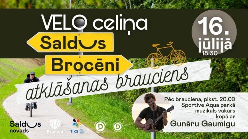 Ilgi gaidītais notikums ir klāt – 16. jūlijā plkst. 18.30 aicinām lielus un mazus pievienoties veloceliņa Saldus-Brocēni atklāšanas braucienam.