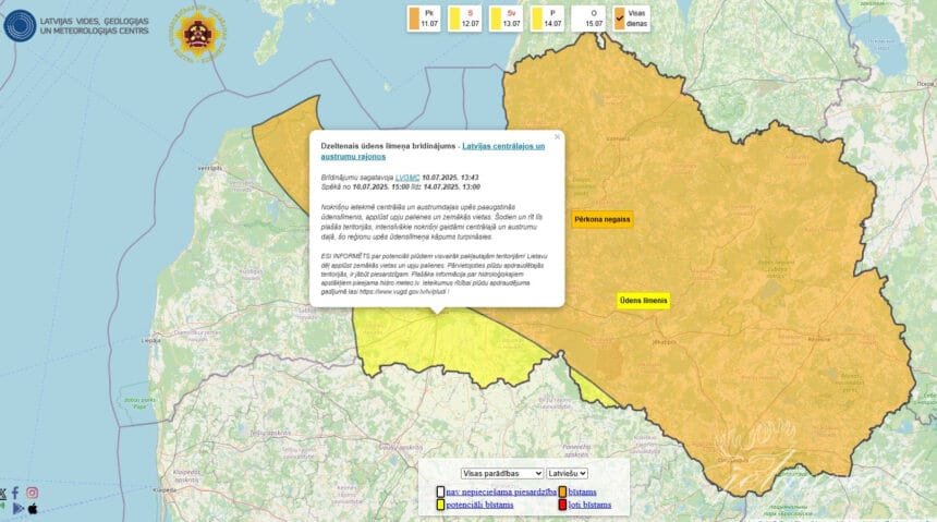 The post Izsludināts dzeltenais ūdens līmeņa brīdinājums appeared first on Jelgava.
