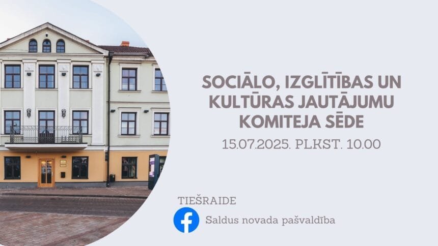 Šo otrdien, 15. jūlijā, plkst. 10.00 notiks Saldus novada domes Sociālo, izglītības un kultūras jautājumu komitejas pirmā sēde, kurā tiks skatīti trīs lēmumprojekti: