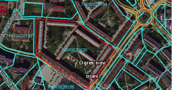 Zemesgabals zem daudzdzīvokļu mājas neietilpst īpašuma sastāvā. Daudzdzīvokļu māja saistīta ar zemesgabalu Ogrē, Ogres novadā, ar kadastra apzīmējumu 7401 002 0020. Zemes īpašuma tiesības reģistrētas fiziskai personai.