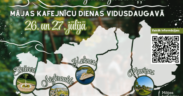 “Mājas kafejnīcu dienas” Vidusdaugavas garšu viļņos aicinās apmeklēt 20 mājas kafejnīcas, no tām trīspadsmit darbosies 26. un 27. jūlijā – piecas būs atvērtas tikai 26. jūlijā un divas tikai 27. jūlijā.