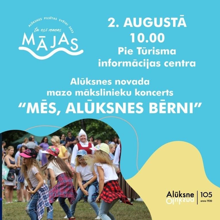 Alūksnes pilsētas svētku sestdienā, 2. augustā, plkst. 10.00 pie Alūksnes Tūrisma informācijas centra norisināsies Alūksnes novada mazo mākslinieku koncerts “MĒS, ALŪKSNES BĒRNI”.