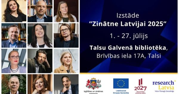 Izglītības un zinātnes ministrijas (IZM) veidotā ceļojošā izstāde „Zinātne Latvijai 2025” turpina iedvesmot interesentus ar 12 Latvijas pētnieku un pētnieču stāstiem. No 1. līdz 27. jūlijam šī daudzveidīgā ekspozīcija ir aplūkojama Talsu Galvenajā bibliotēkā.