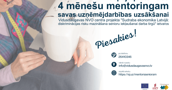 Biedrība “Vidusdaugavas NVO centrs” aicina seniorus (55+) pieteikties 4 mēnešu mentoringa programmai, kas sniedz unikālu iespēju uzsākt vai attīstīt savu uzņēmējdarbību!