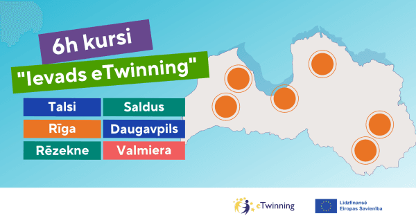 LÄ«dz 11. augustam eTwinning NacionÄlais atbalsta dienests un eTwinning vÄstnieki aicina pedagogus pieteikties bezmaksas 6h klÄtienes kursiem āIevads eTwinningā, kuri norisinÄsies dažÄdos Latvijas reÄ£ionos un RÄ«gÄ. Kursi visos vecumposmos strÄdÄjoÅ”iem pedagogiem norisinÄsies no 14. lÄ«dz 27. augustam, tos vadÄ«s eTwinning vÄstnieki. Tie organizÄti reÄ£ionÄli un uz tiem ir iespÄjams pieteikties jebkuram novada vai pilsÄtas skolotÄjam, kurÅ” atbilst mÄrÄ·auditorijas kritÄrijiem.