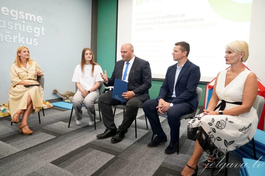 Diskusijā piedalījās M.Daģis, Nodarbinātības valsts aģentūras Jelgavas filiāles vadītāja pienākumu izpildītāja Jūlija Lovkova, Jelgavas Spīdolas ģimnāzijas 12. klases skolniece un “Bite Latvija” Jelgavas filiāles asistente Anna Geraseva un T.Cēsnieks.