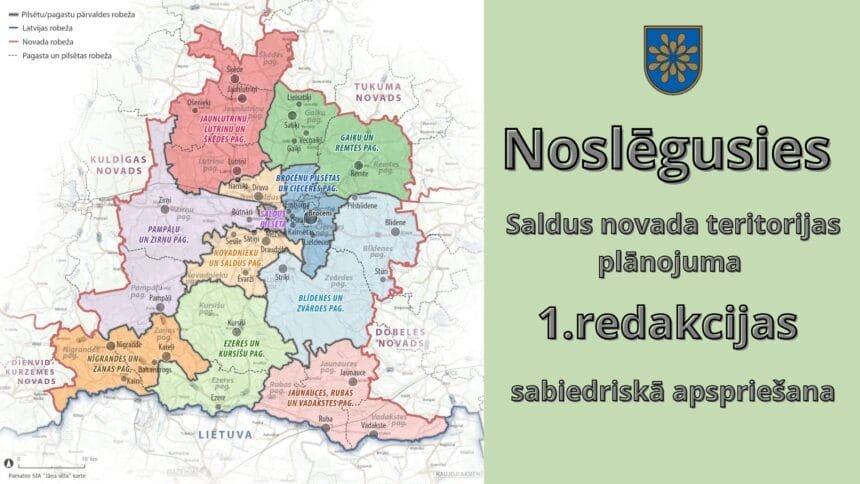 Saldus novada pašvaldības nekustamā īpašuma nodaļa informē, ka jaunā Saldus novada teritorijas plānojuma 1.redakcijas (turpmāk – teritorijas plānojuma 1.redakcija) sabiedriskā apspriešana noslēdzās 2025.gada 13.jūlijā. Apspriešanas sapulcēs klātienē piedalījušies: Saldū – 26, Jaunlutriņos – 21, Brocēnos – 11, Ezerē – 12 un Kalnos -11. Arvien vairāk iedzīvotāju izmanto iespēju piedalīties sapulcēs attālināti – Saldū piedalījās 30 un Brocēnos 6.