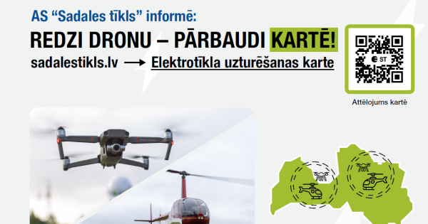 - pārliecināties, ka virs īpašuma redzamais drons vai helikopters veic elektrotīkla apsekošanu.