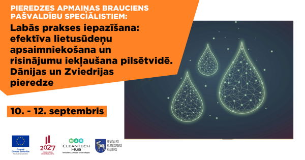 Zemgales plānošanas reģions sadarbībā ar CLEANTECH HUB no 10. līdz 12. septembrim organizē pieredzes apmaiņas braucienu “Labās prakses iepazīšana: efektīva lietusūdeņu apsaimniekošana un risinājumu iekļaušana pilsētvidē. Dānijas un Zviedrijas pieredze”. Brauciena mērķis ir stiprināt Zemgales pašvaldību speciālistu kapacitāti, iepazīstoties ar inovatīviem un efektīviem lietusūdeņu apsaimniekošanas risinājumiem, kas jau veiksmīgi ieviesti pilsētvidē Dānijā un Zviedrijā. Un brauciena mērķgrupa ir pašvaldību un to kapitālsabiedrību vadītāji un speciālisti, eksperti, projektu vadītāji, attīstības plānotāji un citi ar attiecīgo jomu saistīti profesionāļi.
