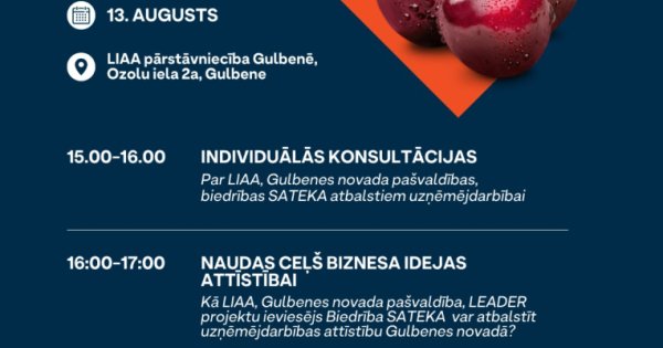 🔹 saņemt individuālas konsultācijas par uzņēmējdarbības atbalsta iespējām no LIAA, Gulbenes novada pašvaldības un biedrības SATEKA;