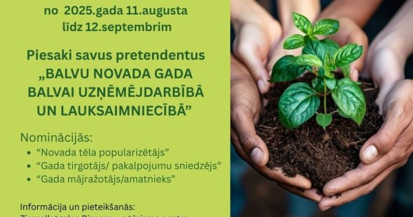 Balvu novada pašvaldības 2025.gada 24.jūlija domes sēdē tika apstiprināts nolikums konkursam “Balvu novada gada balva uzņēmējdarbībā un lauksaimniecībā” (domes sēdes lēmums Nr. 277, protokols Nr. 16, 3.&).
