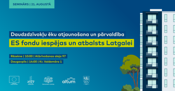 21. augustā Ekonomikas ministrija, Attīstības finanšu institūcija Altum un Latgales plānošanas reģions aicina piedalīties semināros “Daudzdzīvokļu ēku atjaunošana un pārvaldība: ES fondu iespējas un atbalsts Latgalei” Rēzeknē un Daugavpilī.