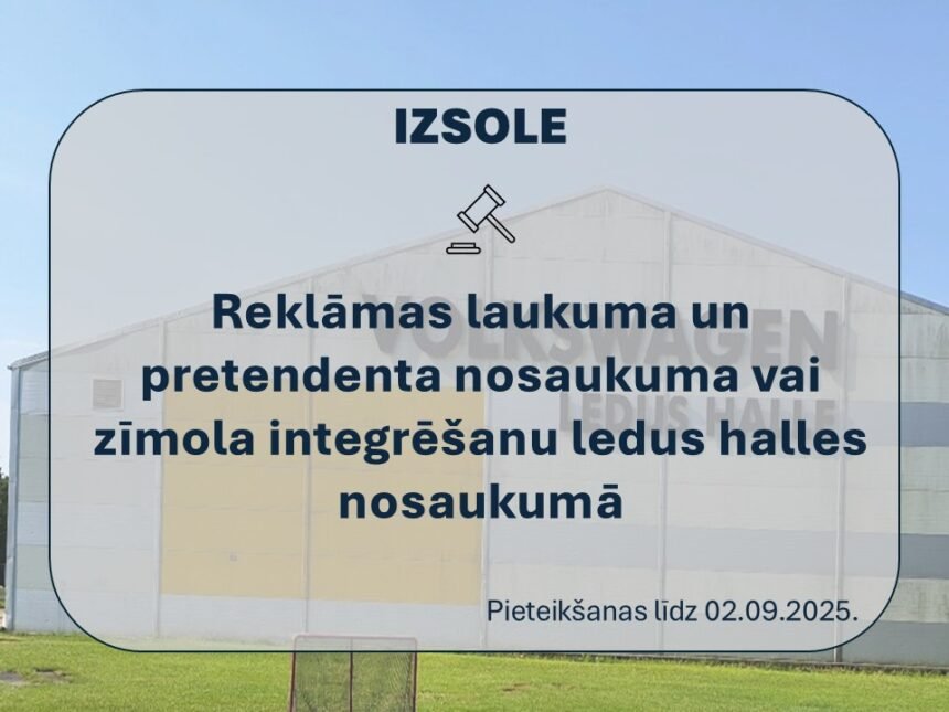 Pieteikums dalībai izsolē jāiesniedz Saldus novada pašvaldībā elektroniski uz e-pasta adresi: ledushalle.reklama@saldus.lv līdz 2025. gada 2.septembrim plkst. 23:59