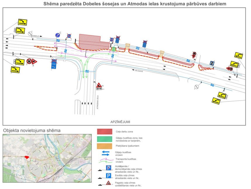 No pirmdienas būs satiksmes izmaiņas Dobeles šosejas un Atmodas ielas krustojumā