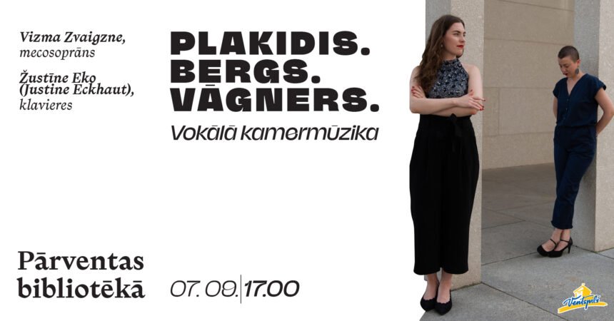 Svētdien, 7. septembrī, plkst. 17.00 Pārventas bibliotēkā ar jaunu kamermūzikas programmu viesosies mūziķes no Berlīnes – latviešu mecosoprāns Vizma Zvaigzne un franču pianiste Žustīne Eko (Justine Eckhaut).