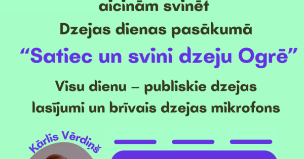 11. septembrī aicinām satikt un svinēt dzeju Ogrē. Dzejas dienu 60 gadu jubilejā svinēsim dzeju arī Ogres Centrālajā bibliotēkā, kur visas dienas garumā skanēs dzejas brīvais mikrofons.
