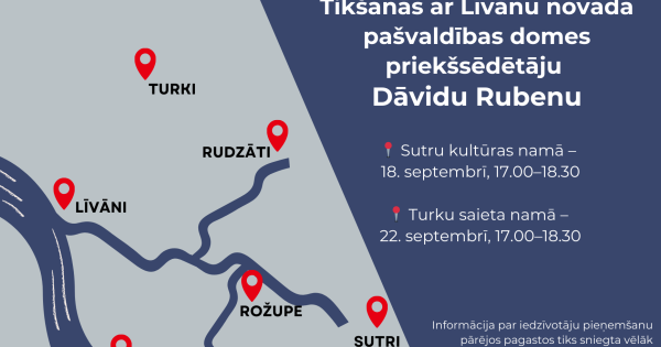 Aicinām izmantot iespēju tikties ar Līvānu novada domes priekšsēdētāju Dāvidu Rubenu tuvāk Jūsu dzīvesvietai!