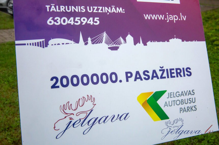 SIA “Jelgavas autobusu parks” (JAP) šonedēļ pilsētas autobusā ir fiksējis šogad 2 000 000. apkalpoto pasažieri – tas 15. septembrī pulksten 5.39 braucis ar 7. maršruta autobusu reisā “Meiju ceļš–Kārniņi”, par braucienu norēķinoties ar abonementa biļeti jeb e-karti. JAP un pašvaldība šobrīd aicina atsaukties e-kartes ar ID numuru 3271447475 īpašnieku, sazinoties ar pašvaldību pa tālruni 63005436.
