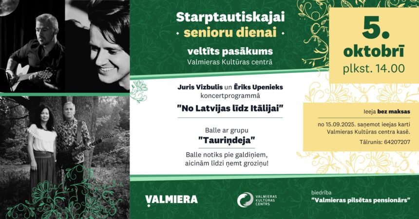 5. oktobrī plkst. 14.00 Valmieras Kultūras centrā norisināsies Starptautiskajai senioru dienai veltīts pasākums.