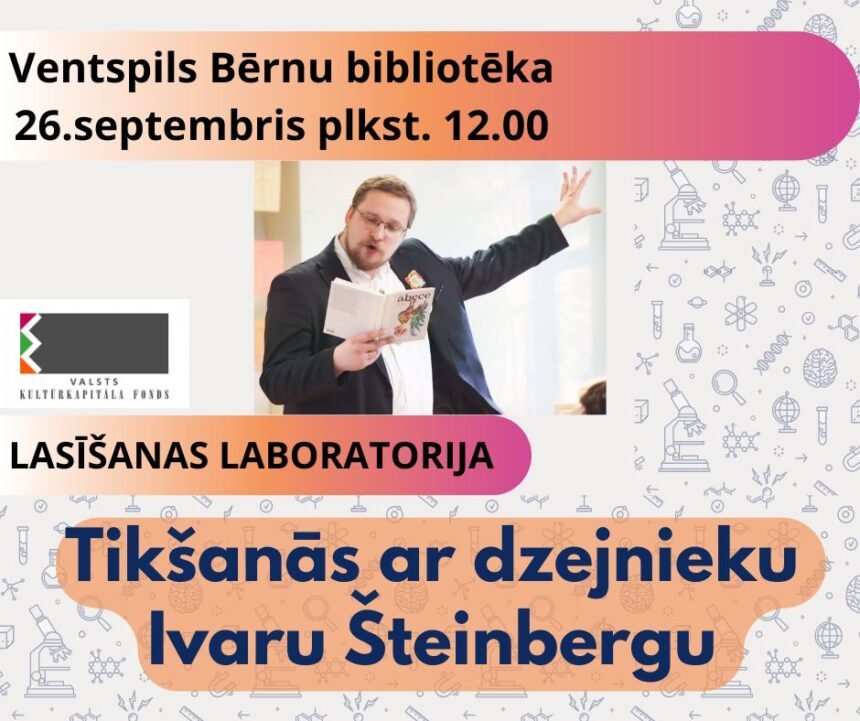 Piektdien, 26. septembrī, plkst. 12.00 Ventspils Galvenajā bibliotēkā Valsts kultūrkapitāla fonda atbalstītā projekta “Lasīšanas laboratorija” ietvaros viesosies dzejnieks Ivars Šteinbergs.