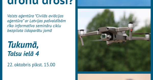 Valsts aģentūra “Civilās aviācijas aģentūra” (CAA) uzsākusi informatīvo semināru ciklu visā Latvijā par bezpilota lidaparātu (dronu) lietošanas normatīvo regulējumu un lietotāju pienākumiem.
