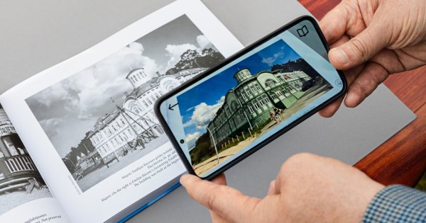 No 212 attēliem, kas publicēti grāmatā, 75 ir ar papildinātās realitātes iespējām. Telefonā vai planšetē redzamas 60 vietas mūsdienās un 15 vēsturiskas kinohronikas.