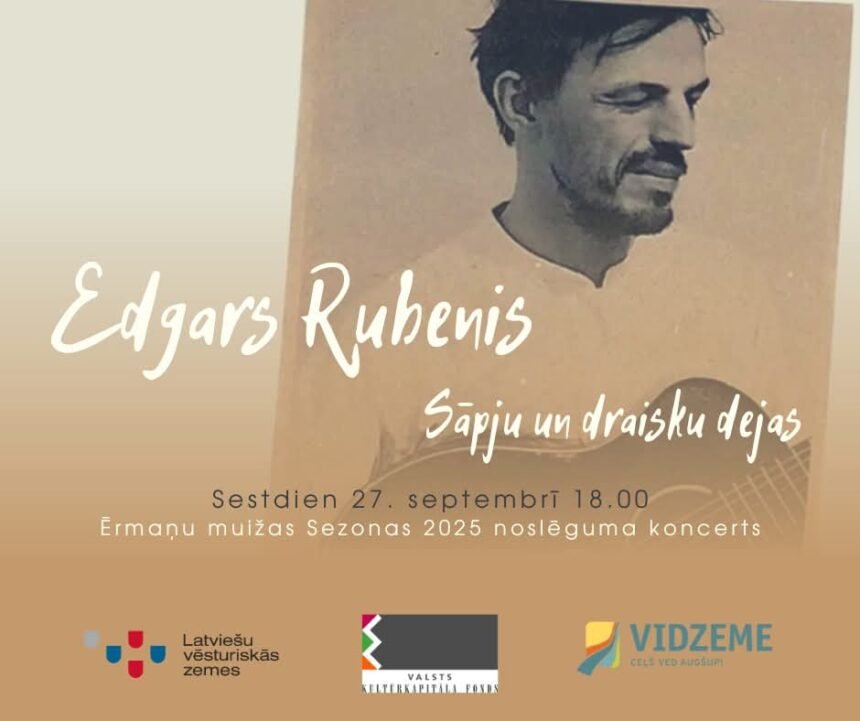 Sestdien 27. septembrī 18.00 tiks noslēgta Ērmaņu muižas Sezona 2025 ar ģitārista un komponista Edgara Rubeņa akustiskās ģitāras solo programmu “Sāpju un draisku dejas”. Aizraujošā dialogā savīsies Rubeņa agrīnajos gados gūtā daudzsološā blūza ģitārista pieredze ar vēlāko gadu meklējumiem mūsdienu eksperimentālajā mūzikā.