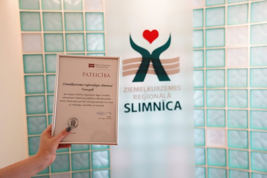 Ziemeļkurzemes reģionālā slimnīca saņēmusi pateicības rakstu no Rīgas Stradiņa universitātes (RSU) par nozīmīgu ieguldījumu, organizējot RSU Medicīnas fakultātes studentu un rezidentu klīnisko prakšu norisi.