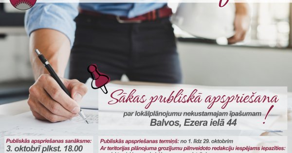 Saskaņā ar Balvu novada domes 25.09.2025. lēmumu Nr.408 “Par lokālplānojuma nekustamajam īpašumam Tautas ielā 3A, Viļakā, Balvu novadā pirmās redakcijas nodošanu publiskajai apspriešanai un atzinumu saņemšanai” (protokols Nr.22, 27.§) publiskajai apspriešanai tiek nodota lokālplānojuma redakcija nekustamajam īpašumam Tautas ielā 3A, Viļakā, Balvu novadā.