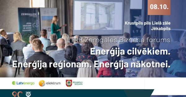 Latvijas Tirdzniecības un rūpniecības kameras (LTRK) Zemgales reģiona nodaļa sadarbībā ar AS “Latvenergo”, Jēkabpils novada pašvaldību un Elektrum organizē enerģētikas tēmai veltītu Zemgales Biznesa forumu “Enerģija cilvēkiem. Enerģija reģionam. Enerģija nākotnei.”, kas norisināsies 8. oktobrī, no plkst. 11:30 līdz plkst.16:30, Jēkabpilī.
