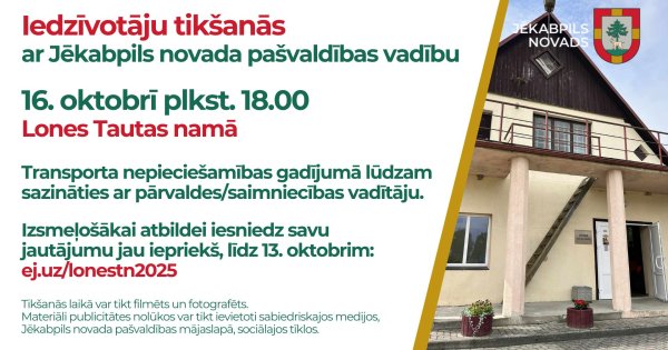 16. oktobrī plkst. 18.00 Lones Tautas namā iedzīvotājiem būs iespēja tikties ar Jēkabpils novada pašvaldības vadību un uzdot sev interesējošus jautājumus.
