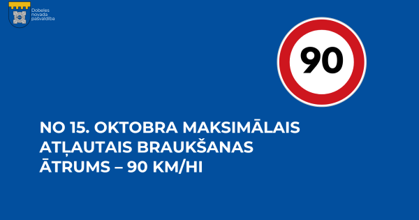 No trešdienas, 15. oktobra, valsts autoceļu tīklā maksimālais braukšanas ātrums tiks pielāgots mainīgajiem un ziemas laikapstākļiem un būs līdz 90 kilometriem stundā.